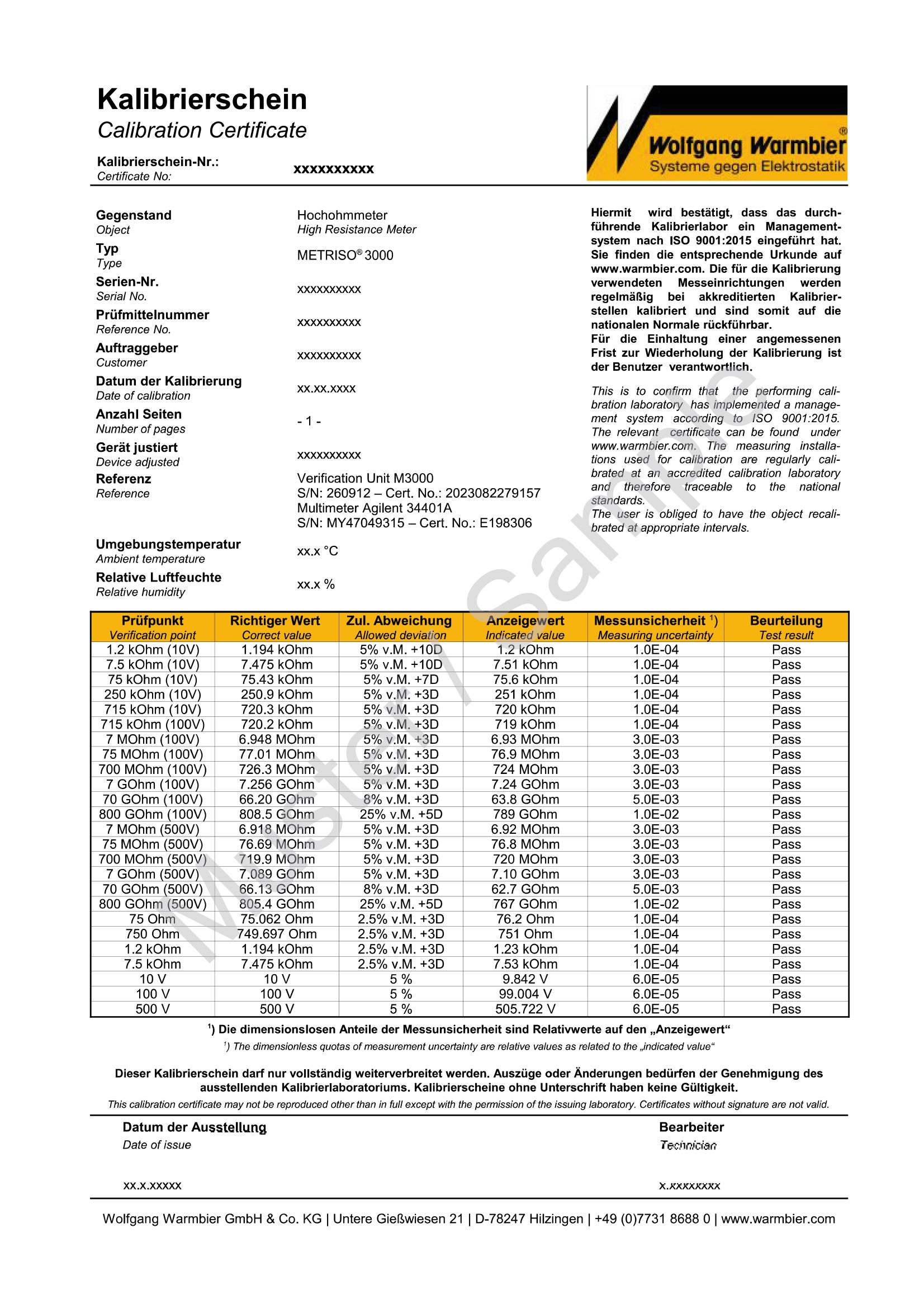 Only properly calibrated ESD measuring and testing instruments can provide reliable and standards-compliant results a fundamental requirement for the safe operation of ESD protected areas (EPA) and for compliance with international regulations. At Wolfgang Warmbier GmbH & Co. KG, calibrations are performed in our in-house calibration laboratory. The lab operates under a quality management system according to ISO 9001:2015 and meets the highest quality standards.